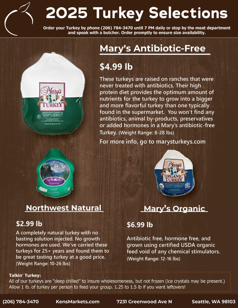 Now accepting Thanksgiving turkey orders! Call, or visit our meat departments to reserve a turkey. We have 3 fresh, quality options available including natural, antibiotic-free and organic.